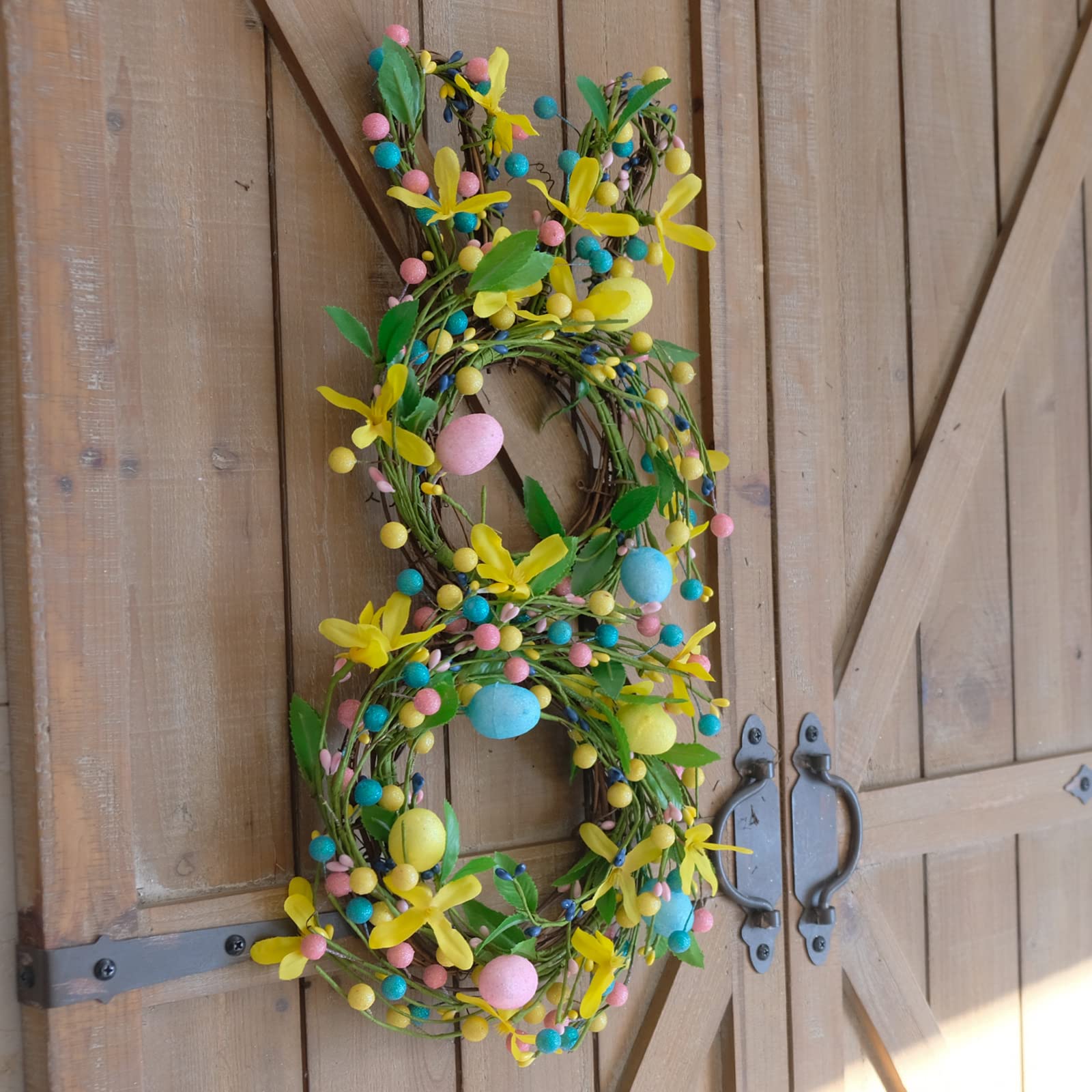 - [Spring Colorful Egg Wreath] Spring and Easter Day is mild and enough energy, so the light baby color is a perfect choice for the color theme of home decor after new year, this wreath use all mild and elegant color for the whole picks, it will well match your Spring Home Decor Accent.