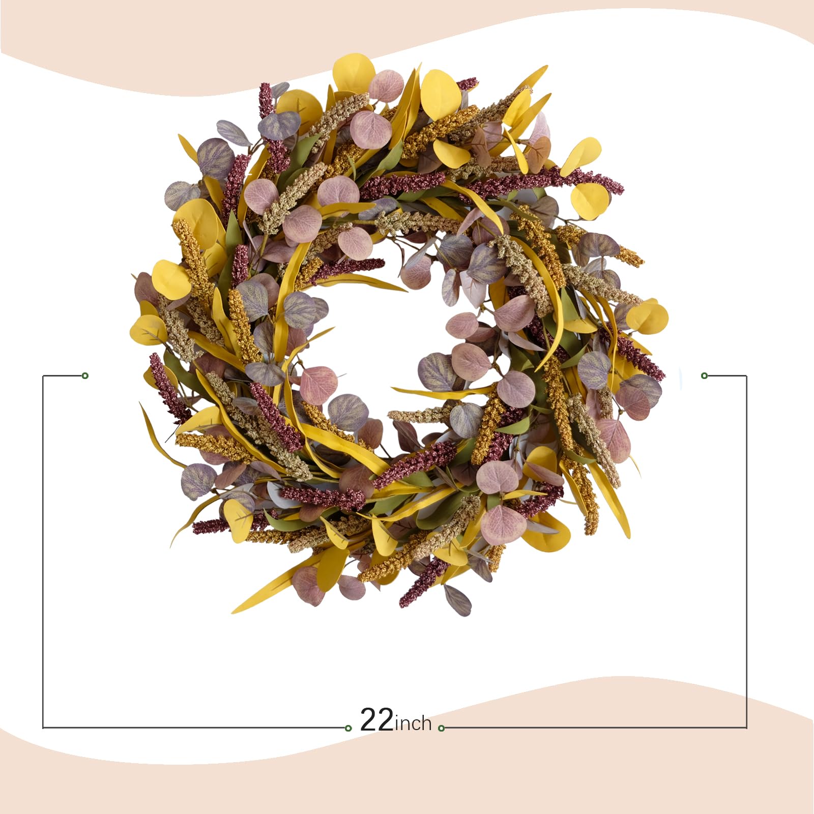 Bibelot 22 inch Artificial Fall Wreaths for Front Door,Autumn Wreath with Eucalyptus Willow Leaves Suitable for Indoor Outdoor Wall Porch Harvest Festival Thanksgiving Day Farmhouse Holiday Decor