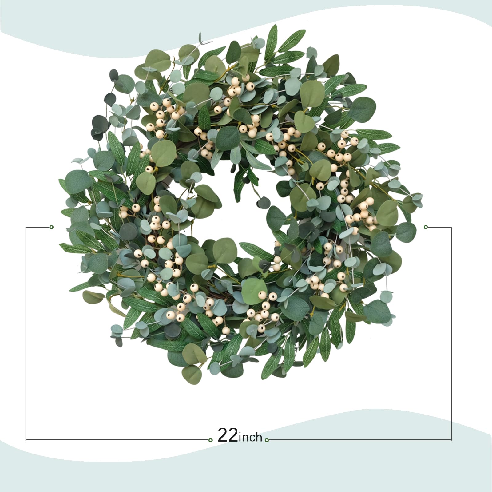 Bibelot 22 inch Artificial Spring/Summer Wreath for Front Door Evergreen Eucalyptus Decoration Wreath with Berries Home Party Indoor Outdoor All Season Decor