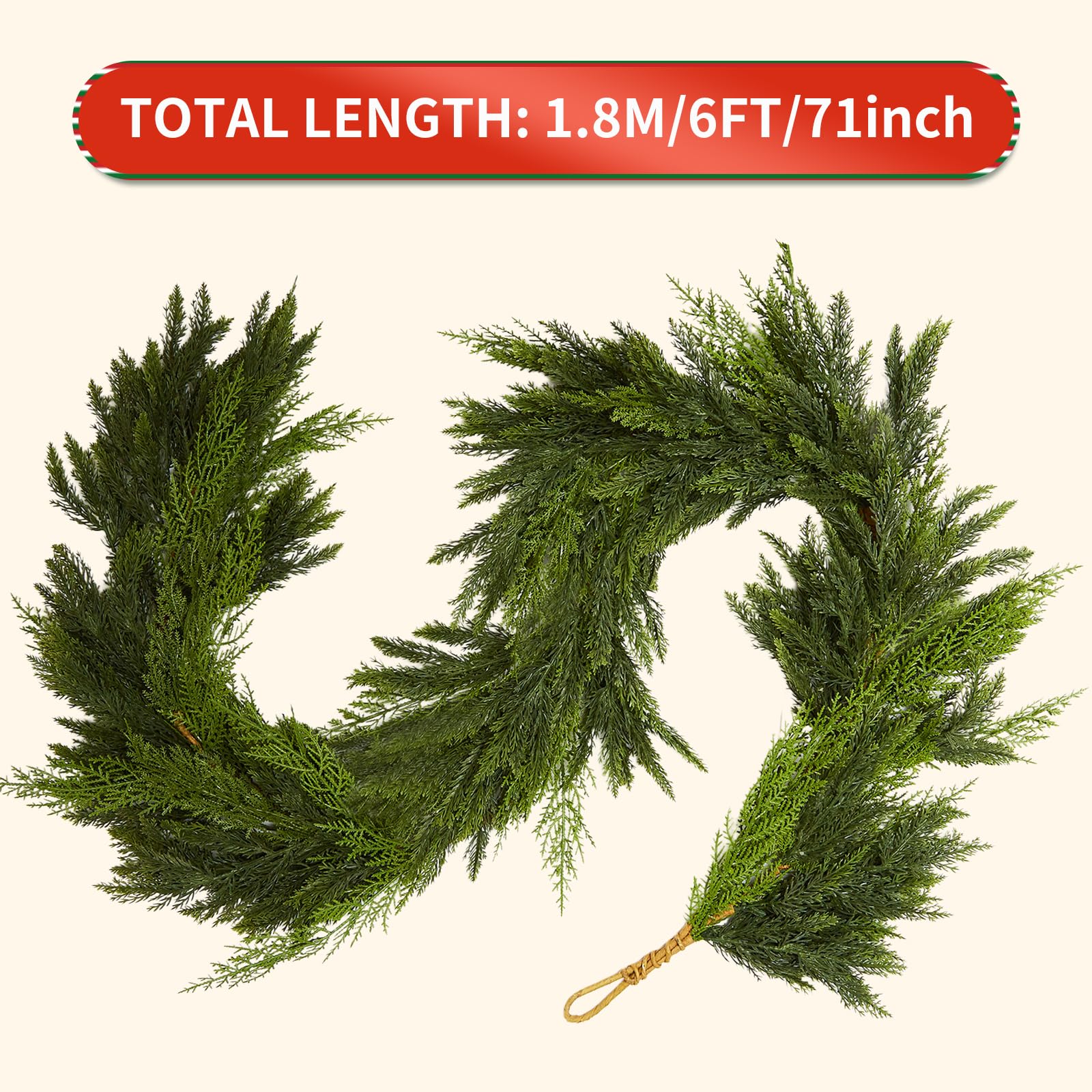 - 【Versatile Size】With 6 feet of lush, dual-toned greenery, this christmas garland indoor provides ample length to beautifully drape over your staircase, fireplace, or as a stunning table garland christmas centerpiece. It’s the perfect size to create a dramatic holiday statement