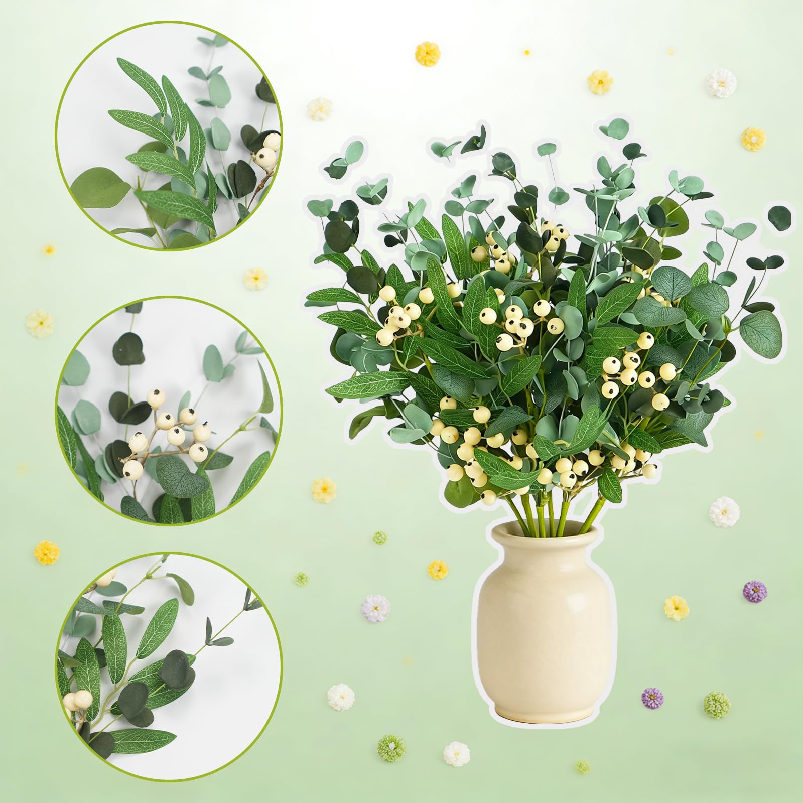 - 【For all occasions】Perfect for wedding centerpieces, dining table arrangements, fireplace mantels, or everyday home accents. Their neutral green-and-white color palette blends seamlessly with various styles, helping you create a fresh, inviting atmosphere