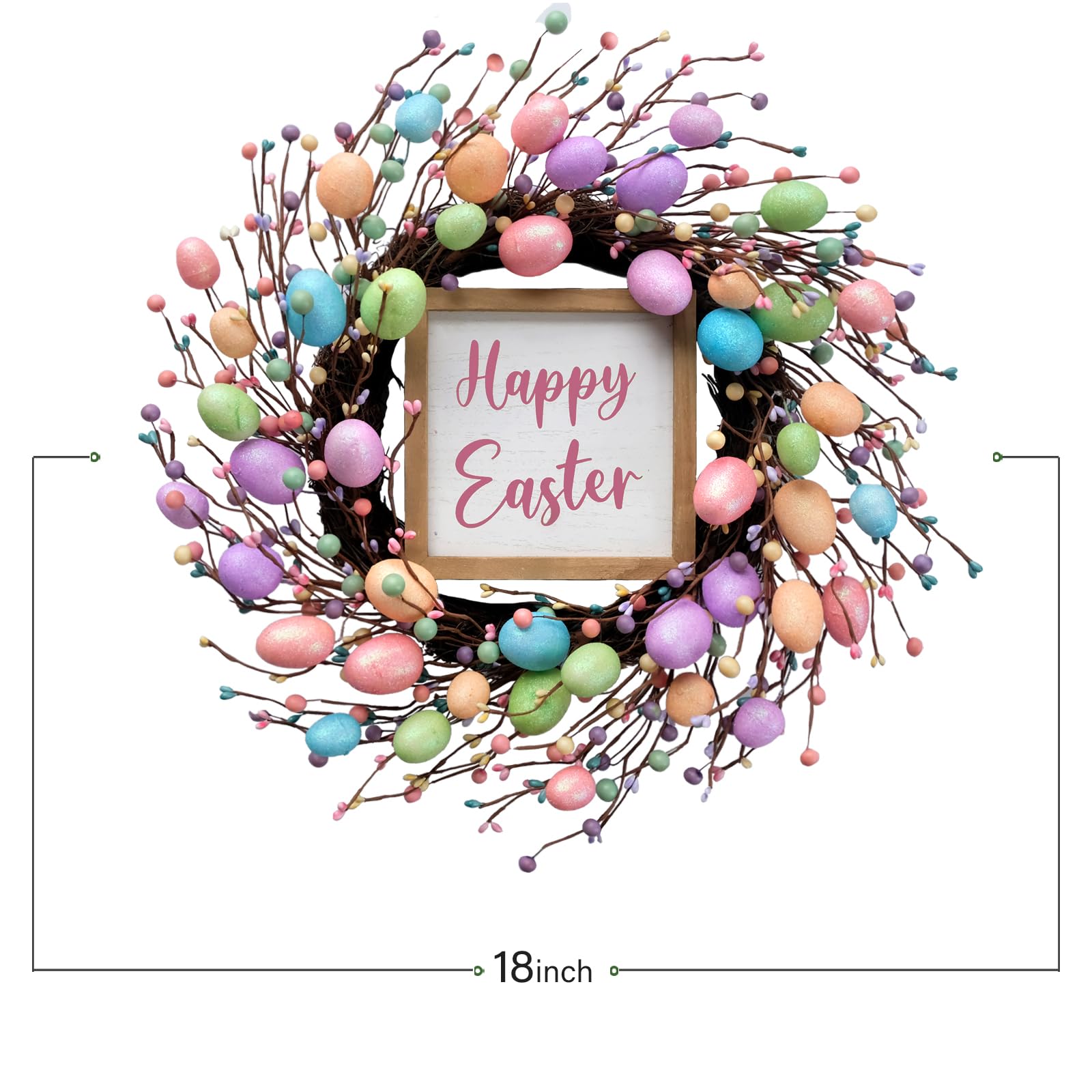 Bibelot Easter Wreath for Front Door, 18 inch Eggs Wreath with Happy Easter Sign, Spring Wreath for Front Door Wall Window Easter Decor