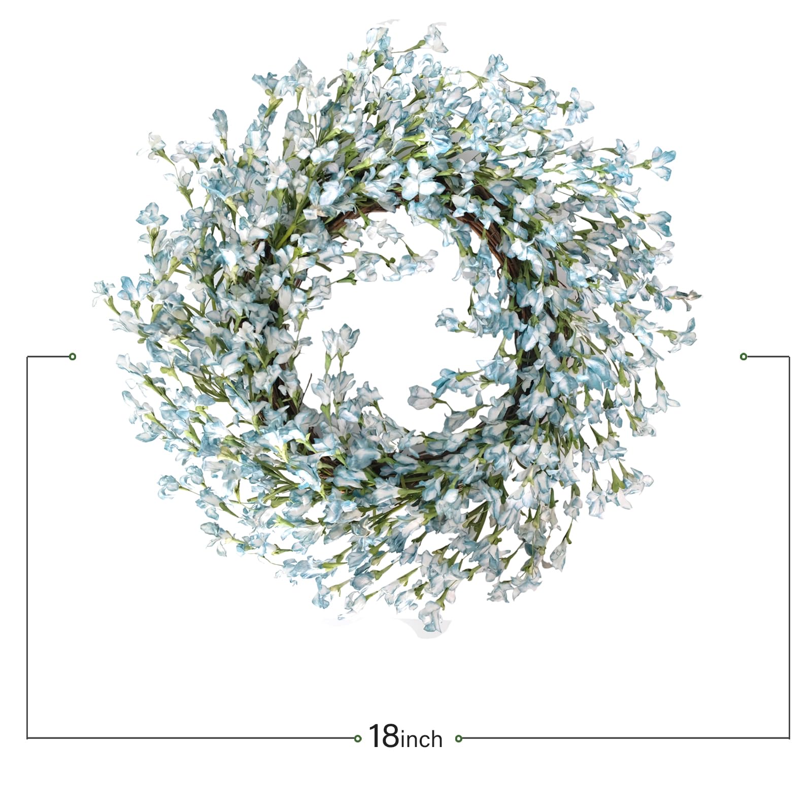 - 4.【Durable】The wreath is made of high quality material that will never rot and will always be alive. The wreath is durable and will last for a long time, add a festive atmosphere to your home every day.Used】This spring wreath is perfect for front door, wall, window, and farmhouse decor. This gorgeous blue wreath can absolutely make your home closer to spring and add festive atmosphere for all year round celebration.